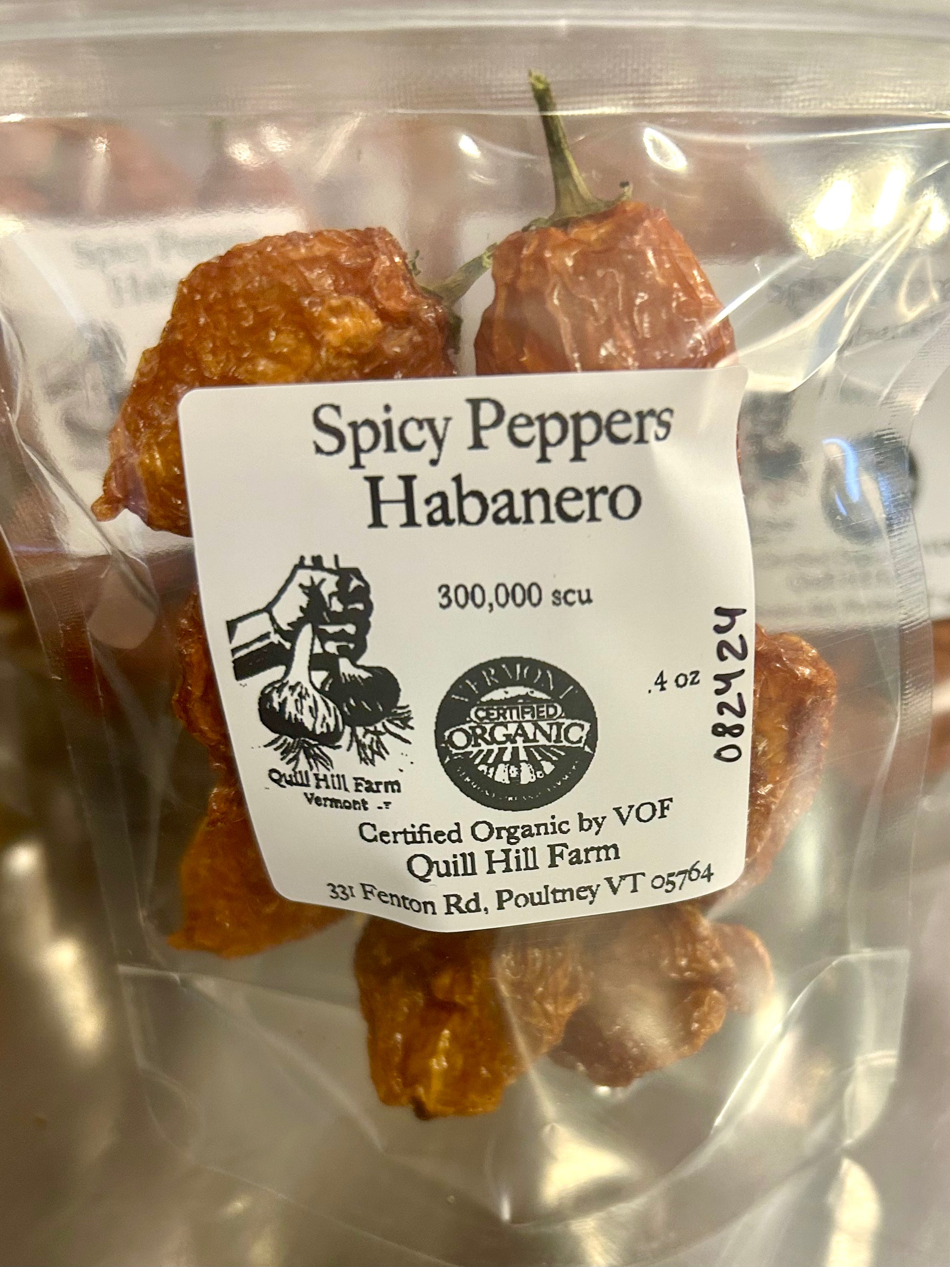 Orange Habanero 0.25-0.40 oz in bag, typically 4-6 peppers in bag.