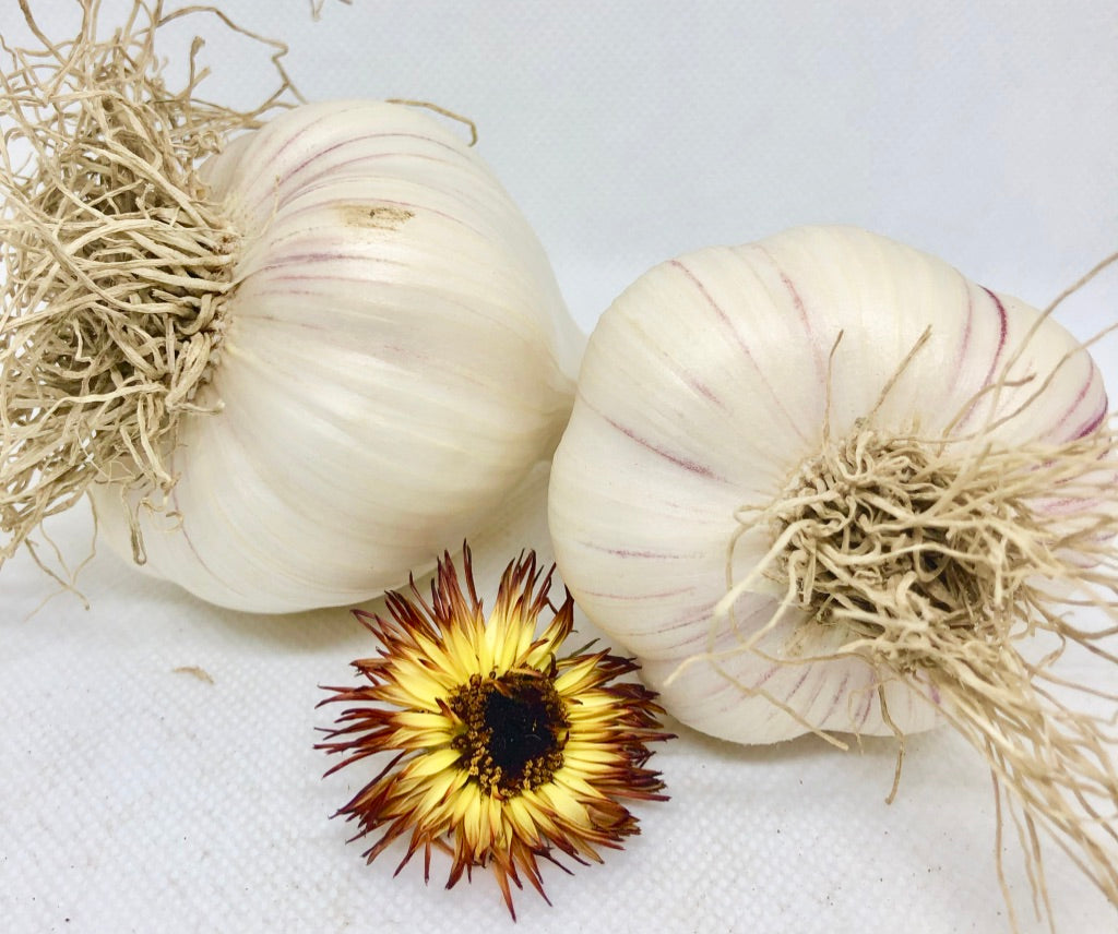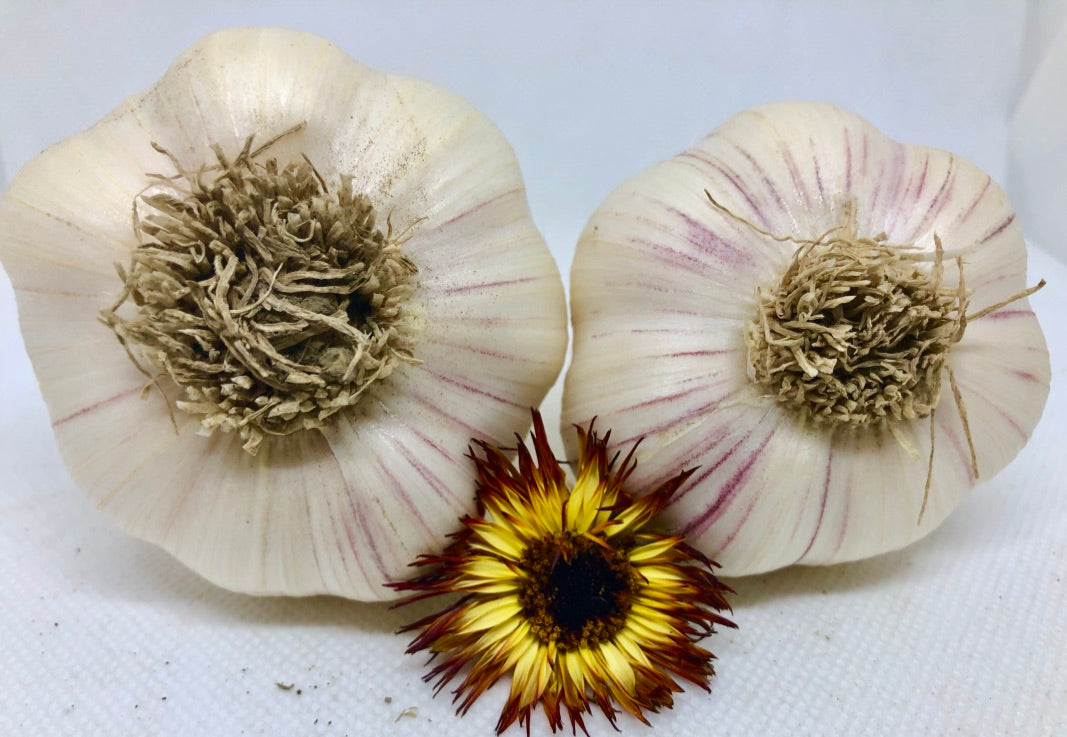 Vietnamese is a hardneck purple stripe garlic that is full of pizazz and slightly sweet flavor that is the trademark of the purple stripe family. What sets Vietnamese apart is a slightly milder and brighter flavor when raw which lends itself beautifully to making raw inspired garlic dishes such as aoili, pesto, ceviche, and Lebanese garlic sauce. In comparison to Chesnok Red which is earthier in flavor, Vietnamese delivers an instant brightness and clean flavor.